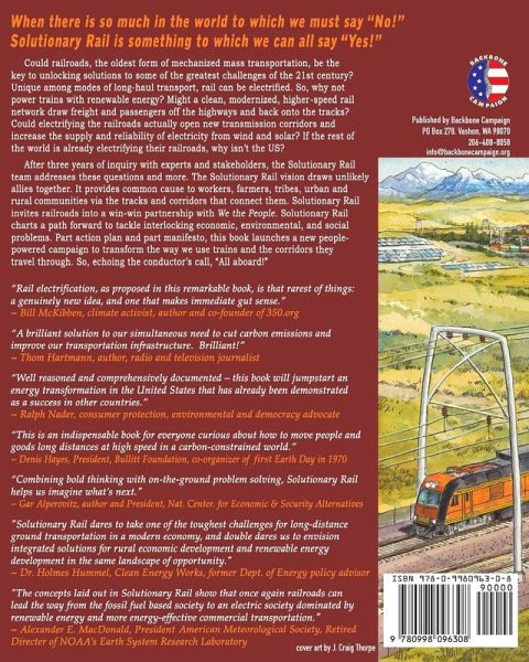 Could railroads, the oldest form of mechanized mass transportation, be the key to unlocking solutions to some of the greatest challenges of the 21st century? Unique among modes of long-haul transport, rail can be electrified. So, why not power trains with renewable energy? Might a clean, modernized, higher-speed rail network draw freight and passengers off the highways and back onto the tracks? Could electrifying the railroads actually open new transmission corridors and increase the supply and reliability of electricity from wind and solar? If the rest of the world is already electrifying their railroads, why isn't the US? After three years of inquiry with experts and stakeholders, the Solutionary Rail team addresses these questions and more. The Solutionary Rail vision draws unlikely allies together. It provides common cause to workers, farmers, tribes, urban and rural communities via the tracks and corridors that connect them. Solutionary Rail invites railroads into a win-win partnership with We the People. Solutionary Rail charts a path forward to tackle interlocking economic, environmental, and social problems. Part action plan and part manifesto, this book launches a new people-powered campaign to transform the way we use trains and the corridors they travel through. So, echoing the conductor's call, "All aboard!"