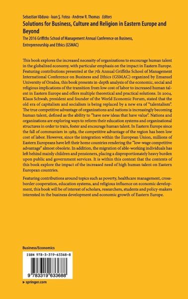 This book explores the increased necessity of organizations to encourage human talent in the globalized economy, with particular emphasis on the impact in Eastern Europe. Featuring contributions presented at the 7th Annual Griffiths School of Management International Conference on Business and Ethics (GSMAC) organized by Emanuel University of Oradea, this book presents in-depth analysis of the economic, social and religious implications of the transition from low cost of labor to increased human talent in Eastern Europe and offers multiple theoretical and practical solutions.