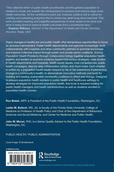 Rapid changes in healthcare and public health offer tremendous opportunities to focus on process improvement. Public health departments and agencies increasingly work collaboratively with hospitals and other community partners to promote knowledge and improve collective impact through public and private sector coalitions. Solving Population Health Problems through Collaboration brings together population health experts and leaders to examine evidence-based intervention strategies, case studies in health departments and hospitals, health equity issues, core competencies, public health campaigns, step-by-step collaboration advice, and much more. Each chapter is written by a population health leader shaped by his or her experience implementing change in a community's health, to demonstrate innovative methods and tools for building and leading sustainable community coalitions to effect real change. Designed to prepare population health workers in public health and healthcare settings to develop strategies for improved population health, this book is required reading for public health managers and health administrators as well as students enrolled in population health courses.