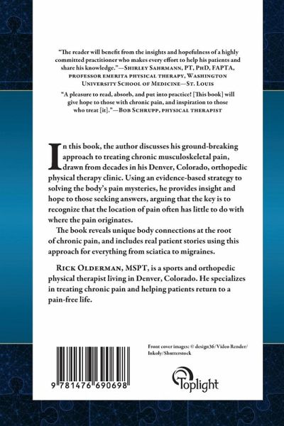 In this book, the author discusses his ground-breaking approach to treating chronic musculoskeletal pain, drawn from decades in his Denver, Colorado orthopedic physical therapy clinic. Using a holistic yet evidence-based strategy to solving the body's pain mysteries, he provides insight and hope to those seeking answers, arguing that the key is to recognize that the location of pain has little to do with where the pain actually originates. The book takes the reader on a journey of self-discovery, revealing unique body connections at the root of chronic pain, and includes real patient stories about how this approach helped with everything from sciatica to migraines.
