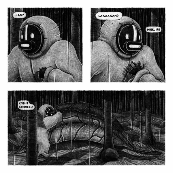 SOMA spielt in einer postapokalyptischen Welt, in der Erde, Wasser und Luft verseucht sind. Das kleine Volk der Soma hat gelernt, in dieser feindlichen Umgebung zu überleben - dank ihrer mächtigen Verbündeten: den Bäumen. Sie versorgen die Soma mit Nahrung und neuem Leben, doch dieser Segen hat seinen Preis. Als Lan sich für die Gemeinschaft opfern soll, kommt es zur Flucht. Gemeinsam mit Iri beginnt die Reise in ein verseuchtes unbekanntes Land, aus dem noch nie eine Forschungsgruppe zurückgekehrt ist...In meisterhaften detailreichen Bleistiftzeichnungen entführt uns dieses stimmungsvolle Debüt der Hamburger Zeichnerin Judith Kranz in eine geheimnisvolle Welt, die an die Manga von Hayao Miyazaki (NAUSICAÄ AUS DEM TAL DER WINDE) ebenso gemahnt wie an die Zeichenwelten von Anke Feuchtenberger.