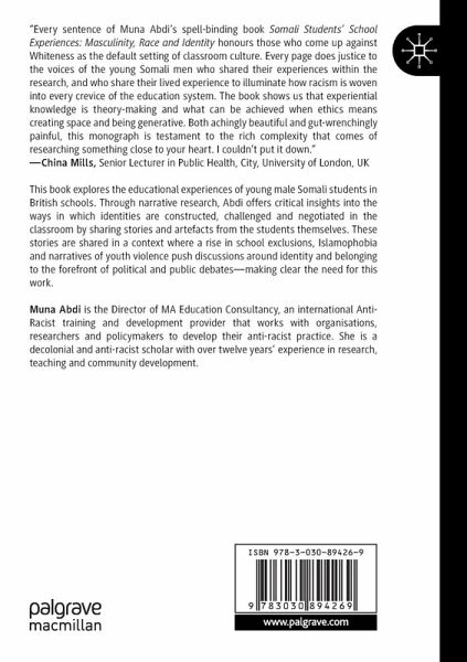 This book explores the educational experiences of young male Somali students in British schools. Through narrative research, Abdi offers critical insights into the ways in which identities are constructed, challenged and negotiated in the classroom by sharing stories and artefacts from the students themselves. These stories are shared in a context where a rise in school exclusions, Islamophobia and narratives of youth violence push discussions around identity and belonging to the forefront of political and public debates-making clear the need for this work.