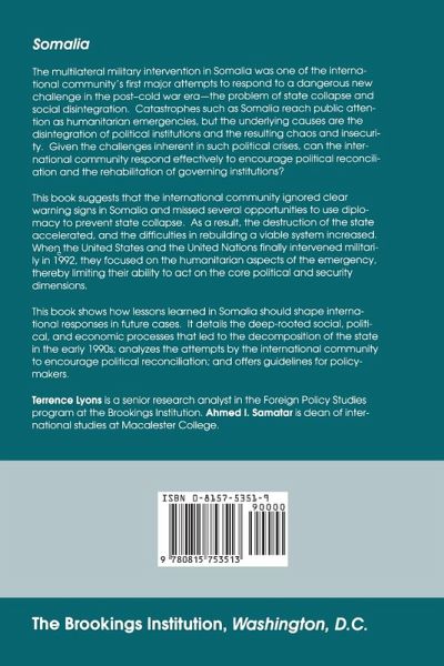 " The multilateral military intervention in Somalia was one of the international community's first major attempts to respond to a dangerous new challenge in the post-cold war era-the problem of state collapse and social disintegration. Catastrophes such as Somalia reach public attention as humanitarian emergencies, but the underlying causes are the disintegration of political institutions and the resulting chaos and insecurity. Given the challenges inherent in such political crises, can the international community respond effectively to encourage political reconciliation and the rehabilitation of governing institutions? This book suggests that the international community ignored clear warning signs in Somalia and missed several opportunities to use diplomacy to prevent state collapse. As a result, the destruction of the state became more complete and the difficulties in rebuilding a viable system more demanding. When the United States and the United Nations finally intervened militarily in 1992, they focused on the humanitarian aspects of the emergency, thereby limiting their ability to act on the core political and security dimensions. This book shows how lessons learned in Somalia will shape international responses in future cases. It details the deep- rooted social, political, and economic processes that led to the decomposition of the state in the early 1990s; analyzes the attempts by the international community to encourage political reconciliation; and offers guidelines for policymakers. "