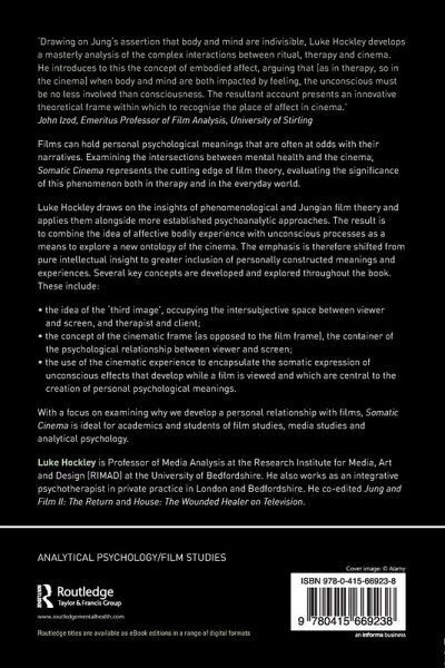 Films can hold personal psychological meanings that are often at odds with their narratives. Examining the intersections between mental health and the cinema, Somatic Cinema represents the cutting edge of film theory, evaluating the significance of this phenomenon both in therapy and in the everyday world. Luke Hockley draws on the insights of phenomenological and Jungian film theory and applies them alongside more established psychoanalytic approaches. The result is to combine the idea of affective bodily experience with unconscious processes as a means to explore a new ontology of the cinema. The emphasis is therefore shifted from pure intellectual insight to greater inclusion of personally constructed meanings and experiences. Several key concepts are developed and explored throughout the book. These include: The idea of the 'Third Image', occupying the intersubjective space between viewer and screen, and therapist and client The concept of the Cinematic Frame (as opposed to the Film Frame), the container of the psychological relationship between viewer and screen The use of the Cinematic Experience to encapsulate the somatic expression of unconscious effects that develop while a film is viewed and which are central to the creation of personal psychological meanings. With a focus on examining why we develop a personal relationship with films, Somatic Cinema is ideal for academics and students of film studies, media studies and analytical psychology.