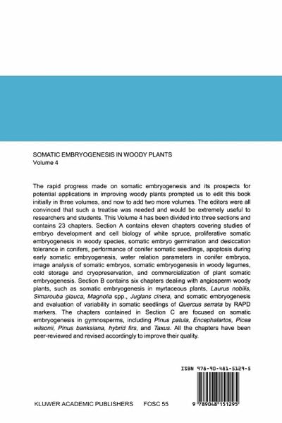 `This book can be recommended for advanced readers (scientists, postgraduate students), with a basic knowledge in somatic embryogenesis in woody species. ... This book is a valuable source of both general information on somatic embryogenesis of woody plants and more definite, practical information focusing on particular genera or species, very useful for preparing lectures and planning research work.' Acta Physiologiae Plantarum, 22:4 (2000)