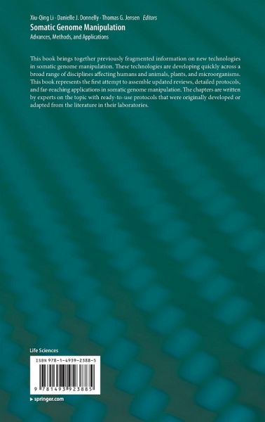 Somatic genome manipulation is required when a sexual crossing approach cannot be used in breeding or genetic treatment of an individual organism. Examples can include gene- or cell-therapy of a person to correct disease, genetic improvement of vegetatively propagated plants, and genetic replacement of cytoplasm without significantly modifying the nuclear genome. The advantage of somatic genome manipulation is maintenance of the general genotype while correcting one or more traits. Somatic genome manipulation is also an option for genetic improvement of sexually propagated plants in polyploidy breeding or in overcoming issues of sexual incompatibility. Recent novel technologies in somatic genome manipulation are developing quickly but much of this literature is fragmented and difficult or inconvenient to access. This book represents the first attempt to assemble updated reviews, detailed protocols, and their applications in all fields in which somatic genome manipulation has thrived. This is a truely one-of-a-kind work that brings together the most important and relevant advances in somatic genome manipulation in plants, algae, microorganisms, humans and animals, and demonstrates where the science interacts and where it diverges. The chapters are written by experts on the topic with ready-to-use protocols that were originally developed or adapted from the literature in their laboratories. We expect that this book will be useful for students, researchers, and teachers in both plant and animal research as a resource for the latest information on somatic genome manipulation and for its useful laboratory methods.