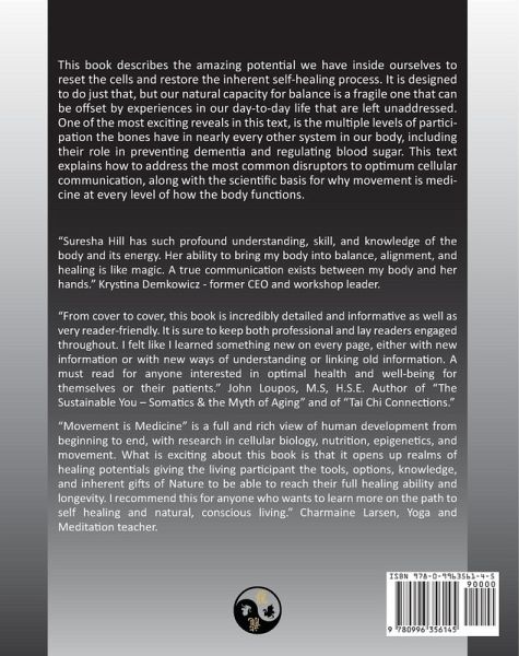 "This book describes the amazing potential we have inside ourselves to reset the cells and restore the inherent self-healing process. It is designed to do just that, but our natural capacity for balance is a fragile one that can be offset by experiences in our day-to-day life that are left unaddressed. This text explains how to address the most common disruptors to optimum cellular communication, along with the scientific basis for why movement is medicine at every level of how the body functions."