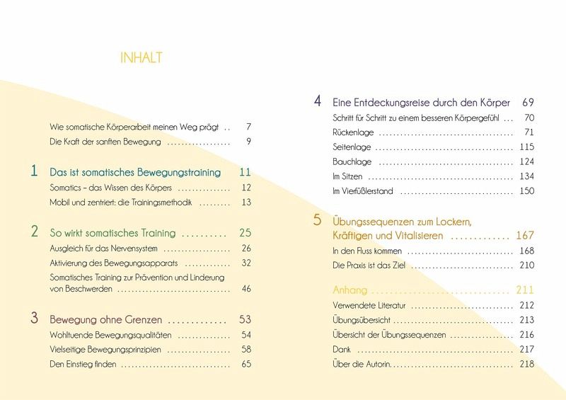 Achtsames Training für dein bestes KörpergefühlSuchst du nach einer wohltuenden und natürlichen Methode, um deine Gesundheit zu fördern und deinen Körper zu trainieren? Somatisches Training bietet genau das! Das Prinzip dahinter ist so simpel wie effektiv: Durch fließende, moderate Bewegungsmuster wird dein somatisches Nervensystem adressiert, das verantwortlich für Muskelkontraktion und Schmerzempfinden ist. So kannst du gleichzeitig - Verspannungen lösen, - deine Beweglichkeit verbessern und - Kraft aufbauen.Und das auf denkbar sanfte Weise. Dafür stellt dir die Bewegungsexpertin Manuela Berndt die besten Übungen und Sequenzen vor, die nicht nur wirkungsvoll, sondern zudem extrem abwechslungsreich sind. Nach und nach lernt dein Körper so auch, eigene Impulse besser einzuordnen und sich im Alltag schonender und gesünder zu bewegen. Mit diesem besonderen Ansatz, der sich ideal für gänzlich Ungeübte oder Menschen mit Bewegungseinschränkungen eignet, findest du garantiert zu einem geschmeidigeren und besseren Körpergefühl!