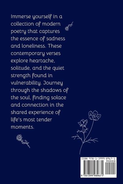 "Sombre Nights" is a poignant collection of a more modern style of poetry, including a variety of late night thoughts you have while alone in your bed; truly capturing the deep raw emotions of heartbreak. Each poem is a journey through the labyrinth of sorrow, capturing the silent tears and the aching void left behind by lost love. The verses in this book paint vivid pictures of nights filled with longing and introspection, offering a cathartic exploration of the heart's most vulnerable moments. "Sombre Nights" is a testament to the resilience of the human spirit, resonating with anyone who has ever felt the profound weight of a broken heart.