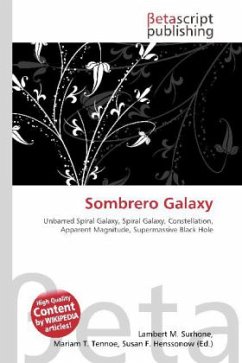 Please note that the content of this book primarily consists of articles available from Wikipedia or other free sources online. The Sombrero Galaxy (also known as M 104 or NGC 4594 ) is an unbarred spiral galaxy in the constellation Virgo. It has a bright nucleus, an unusually large central bulge, and a prominent dust lane in its inclined disk. The dark dust lane and the bulge give this galaxy the appearance of a sombrero. The galaxy has an apparent magnitude of +9.0, making it easily visible with amateur telescopes. The large bulge, the central supermassive black hole, and the dust lane all attract the attention of professional astronomers.The Sombrero Galaxy was discovered in March of 1767 by Pierre Méchain, who described the object in a May 1767 letter to J. Bernoulli that was later published in the Berliner Astronomisches Jahrbuch.