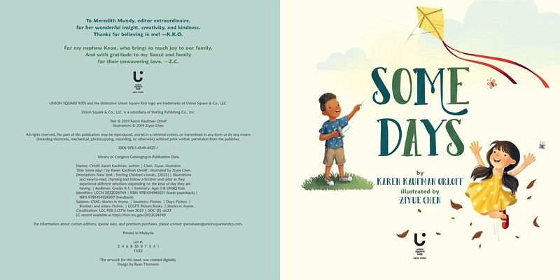 Karen Kaufman Orloff is the author of many books for children, including Goodnight, Little Bot, illustrated by Kim Smith, Miles of Smiles, illustrated by Luciano Lozano, and the popular I Wanna series, illustrated by David Catrow. Some Days is her 11th book. Karen lives in Dutchess County, New York, with her husband and family. Visit her online at karenkaufmanorloff.com. Ziyue Chen (pronounced as Zzz yuair) is a graduate of Ringling College of Art and Design, where she received her BFA with Honors in Illustration. She previously worked as an animator on projects dedicated to children’s art and as a website and print designer. Ziyue lives with her husband and her two darling children in the sunny island of Singapore. Her latest work can be viewed on her Instagram, @ziyuechen.