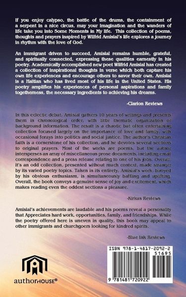 If you enjoy calypso, the battle of the drums, the containment of serpent in a nice circus, may your imagination and the wanders of life take you in the arms of the Archangels in my life journey in rhythm with the love of God, the Father, the Son and the Holy Ghost guided by my humble Christian upbringing. Family and friends enjoy this journey no matter how bumpy the road.