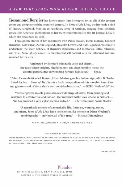 A New York Times Book Review Editors' Choice Rosamond Bernier has known many (one is tempted to say all) of the greatest artists and composers of the twentieth century. In Some of My Lives, she has made a kind of literary scrapbook from an extraordinary array of writings, ranging from scholarly articles for American publications to her many contributions to the art journal L'OEIL, which she cofounded in 1955. Through the stories of her encounters with Pablo Picasso, Henri Matisse, Leonard Bernstein, Max Ernst, Aaron Copland, Malcolm Lowry, and Karl Lagerfeld, we come to understand the sheer richness of Bernier's experiences and memories. Pithy, hilarious, and wise, Some of My Lives is a multifaceted self-portrait of a life informed and surrounded by the arts.