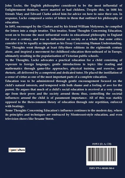 Texte à corriger : "Some Thoughts Concerning Education" by John Locke is a seminal work that explores the philosophy and methodology of education. Locke emphasizes the importance of education in shaping the character and intellect of individuals. He argues that education should be tailored to the individual needs of each child, taking into account their evolving dispositions and abilities. Locke advocates for a balanced approach that combines physical, moral, and intellectual development. He stresses the significance of cultivating virtues such as honesty, diligence, and self-discipline from an early age. Locke also highlights the role of parents and tutors in guiding the educational process, suggesting that they should lead by example and create an environment conducive to learning. The work is divided into several parts, each addressing different aspects of education, including the teaching of grammar, the development of reasoning skills, and the importance of practical knowledge. Locke's ideas have had a profound influence on modern educational theory, promoting the concept of education as a lifelong process that extends beyond formal schooling.