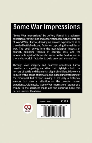 Some War Impressions"" by Jeffery Farnol is a poignant collection of reflections and observations from the frontlines of World War I Farnol, drawing on his own experiences as he travelled battlefields, and factories, capturing the realities of war. The book delves into the psychological impacts of conflict, exploring themes of courage, loss, and the indomitable spirit of those who serve on the field as well as those who work in factories to build arms and ammunition. Through vivid imagery and heartfelt anecdotes, Farnol provides a compelling narrative that highlights both the horrors of battle and the mental plight of soldiers. His work is imbued with a sense of nostalgia and a deep understanding of the emotional toll of war, making it not only a historical account but also a reflection on the broader human experience. Ultimately, ""Some War Impressions"" stands as a tribute to the sacrifices made and the enduring hope that persists amidst the chaos.