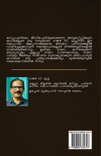 This collection of poems by Rajan CH is a collection of poems that make you feel that a book of poetry is a book of life. It is easy for every reader to be convinced that each poem is woven with thin threads of deliberation that can be read in narrative experience environments. The sculptural poetry that enables such a sensation in each line predates contemporary poetry by at least ten years.