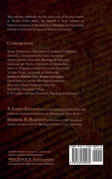 This volume celebrates the life and work of the late Simon B. Parker (1940-2006), the Harrell F. Beck Scholar of Hebrew Scripture at the School of Theology and Graduate School of Arts and Sciences at Boston University. Contributors Edward L. Greenstein Mark S. Smith Karel van der Toorn Steve A. Wiggins N. Wyatt Katheryn Pfisterer Darr David Marcus Herbert B. Huffmon Bernard F. Batto Tim Koch F. W. Dobbs-Allsopp Amy Limpitlaw