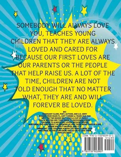 Somebody will always love you book written by Mahogany Clark, teaches young children that, they are always loved, and cared for, because our first loves are our parents or the people that help raise us, and a lot of the time, children are not told enough, that no matter what, they are and will forever be loved. It is important to have the correct nourishment from a young age, because it will determine your future relationships with the people you encounter. Sometimes the people closest to us such as our parents, family, and friends are so consumed with the stresses in their own lives it seems that they have forgotten about you. This book teaches our younger children that, even when mom & dad are busy, sister & brother are there, or grandma, grandpa, aunt, uncle and friends. There were times when I was younger and I felt alone, even with so many people around me, simply because the two people who I needed most in my life caused me a lot of pain, but I had family, friends, and mentors around that I could look to. Therefore, I chose to bring awareness to the younger crowd that someone always cares, and someone is always there, believe in that always, and never forget, no matter what you do, somebody always loves you. ddddddffffffffffffffffffffffffffffffffffffffffffffffffffffffffffffffffffffffffffffffffffffffffffffffffffffffffffffffffffffffffffffffffffffffffffffffffffffffffffffffffffffffffffffffffffffffffffffffffffffffffffffffffffffffffffffffffffffffffffffffffffffffffffffffffffffffffffffffffffffffffffffffffffffffffffffffffffffffffffffffffffffffffffffffffffffffffffffffffffffffffffffffffffffffffffffffffffffffffffffffffffffffffffffffffffffffffffffffffffffffffffffffffffffffffffffffffffffffffffffffffffffffffffffffffffffffffffffffffffffffffffffffffffffffffffffffffffffffffffffffffffffffffffffffffffffffffffffffffffffffffffffffffffffffffffffffffffffffffffffffffffffffffffffffffffffffffffffffffffffffffffffffffffffffffffffffffffffffffffffffffffffffffffffffffffffffffffffffffffffffffffffffffffffffffffffffffffffffffffffffffffffffffffffffffffffffffffffffffffffffffffffffffffffffffffffffffffffffffffffffffffffffffffffffffffffffffffffffffffffffffffffffffffffffffffffffffffffffffffffffffffffffffffffffffffffffffffffffffffffffffffffffffffffffffffffffffffffffffffffffffffffffffffffffffffffffffffffffffffffffffffffffffffffffffffffffffffffffffffffffffffffffffffffffffffffffffffffffffffffffffffffffffffffffffffffffffffffffffffffffffffffffffffffffffffffffffffffffffffffffffffffffffffffffffffffffffffffffffffffffffffffffffffffffffffffffffffffffffffffffffffffffffffffffffffffffffffffffffffffffffffffffffffffffffffffffffffffffffffffffffffffffffffffffffffffffffffffffffffffffffffffffffffffffffffffffffffffffffffffffffffffffffffffffffffffffffffffffffffffffffffffffffffffffffffffffffffffffffffffffffffffffffffffffffffffffffffffffffffffffffffffffffffffffffffffffffffffffffffffffffffffffffffffffffffffffffffffffffffffffffffffffffffffffffffffffffffffffffffffffffffffffffffffffffffffffffffffffffffffffffffffffffffffffffffffffffffffffffffffffffffffffffffffffffffffffffffffffffffffffffffffffffffffffffffffffffffffffffffffffffffffffffffffffffffffffffffffffffffffffffffffffffffffffffffffffffffffffffffffffffffffffffffffffffffffffffffffffffffffffffffffffffffffffffffffffffffffffffffffffffffffffffffffffffffffffffffffffffffffffffffffffffffffffffffffffffffffffffffffffffffffffffffffffffffffffffffffffffffffffffffffffffffffffffffffffffffffffffffffffffffffffffffffffffffffffffffffffffffffffffffffffffffffffffffffffffffffffffffffffffffffffffffffffffffffffffffffffffffffffffffffffffffffffffffffffffffffffffffffffffffffffffffffffffffffffffffffffffffffffffffffffffffffffffffffffffffffffffffffffffffffffffffffffffffffffffffffffffffffffffffffffffffffffffffffffffffffffffffffffffffffffffffffffffffffffffffffffffffffffffffffffffffffffffffffffffffffffffffffffffffffffffffffffffffffffffffffffffffffffffffffffffffffffffffffffffffffffffffffffffffffffffffff