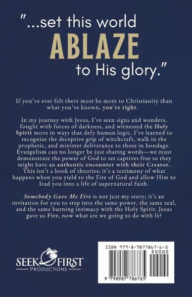 If you've ever felt there must be more to Christianity than what you've known, you're right. Through my journey in Jesus, I've seen signs and wonders, battled against the forces of darkness, and witnessed the Holy Spirit move in ways that defy human logic. I've learned to recognize the deceptive grip of witchcraft, walk in the prophetic, and minister deliverance to those in bondage. Evangelism can no longer be just sharing words-we must demonstrate the raw power of God to set captives free so they might have an authentic encounter with their Creator. This isn't a book of theories; it's a testimony of what happens when you yield to the Fire of God and allow Him to lead you into a life of supernatural faith. Somebody Gave Me Fire isn't just my story; it's an invitation for you to step into the same power, the same zeal, and the same burning intimacy with the Holy Spirit. Jesus gave us Fire, now what are we going to do with It?