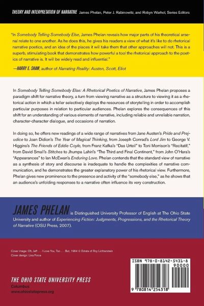 In Somebody Telling Somebody Else, James Phelan proposes a paradigm shift for narrative theory, a turn from viewing narrative as a structure to viewing it as a rhetorical action in which a teller selectively deploys the resources of storytelling in order to accomplish particular purposes in relation to particular audiences. Phelan explores the consequences of this shift for an understanding of various elements of narrative, including reliable and unreliable narration, character-character dialogue, and occasions of narration. In doing so, he offers new readings of a wide range of narratives from Jane Austen's Pride and Prejudice to Joan Didion's The Year of Magical Thinking, from Joseph Conrad's Lord Jim to George V. Higgins's The Friends of Eddie Coyle, from Franz Kafka's "Das Urteil" to Toni Morrison's "Recitatif," from David Small's Stitches to Jhumpa Lahiri's "Third and Final Continent," from John O'Hara's "Appearances" to Ian McEwan's Enduring Love. Phelan contends that the standard view of narrative as a synthesis of story and discourse is inadequate to handle the complexities of narrative communication, and he demonstrates the greater explanatory power of his rhetorical view. Furthermore, Phelan gives new prominence to the presence and activity of the "somebody else," as he shows that an audience's unfolding responses to a narrative often influence its very construction.