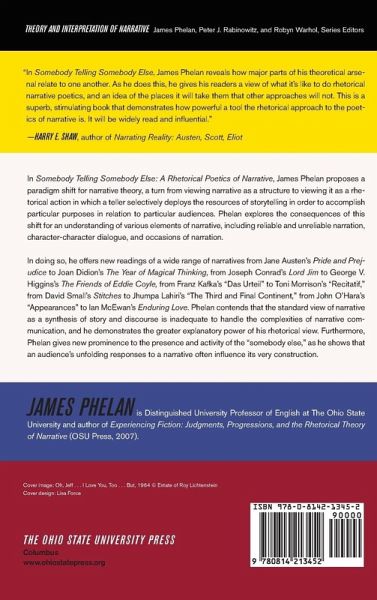 In Somebody Telling Somebody Else, James Phelan proposes a paradigm shift for narrative theory, a turn from viewing narrative as a structure to viewing it as a rhetorical action in which a teller selectively deploys the resources of storytelling in order to accomplish particular purposes in relation to particular audiences. Phelan explores the consequences of this shift for an understanding of various elements of narrative, including reliable and unreliable narration, character-character dialogue, and occasions of narration. In doing so, he offers new readings of a wide range of narratives from Jane Austen's Pride and Prejudice to Joan Didion's The Year of Magical Thinking, from Joseph Conrad's Lord Jim to George V. Higgins's The Friends of Eddie Coyle, from Franz Kafka's "Das Urteil" to Toni Morrison's "Recitatif," from David Small's Stitches to Jhumpa Lahiri's "Third and Final Continent," from John O'Hara's "Appearances" to Ian McEwan's Enduring Love. Phelan contends that the standard view of narrative as a synthesis of story and discourse is inadequate to handle the complexities of narrative communication, and he demonstrates the greater explanatory power of his rhetorical view. Furthermore, Phelan gives new prominence to the presence and activity of the "somebody else," as he shows that an audience's unfolding responses to a narrative often influence its very construction.