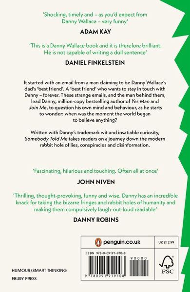 Danny Wallace, million-copy bestselling author of Yes Man and Join Me, has fallen down the modern rabbit hole of lies, conspiracies and disinformation. Along the way, he encounters families torn apart by accusations and fake news, journalists putting themselves on the frontline of the disinformation war, reformed conspiracy theorists, influencers who see profit in stoking paranoia, and the shadowy nameless, faceless trolls on the other side of our screens. He discovers how disinformation and well-told lies can ruin a year or a whole life, how they can affect our family, our street, our community. How they can spread across a country, a continent, even the world. How they take hold of our imaginations and make us feel both helpless and powerful.