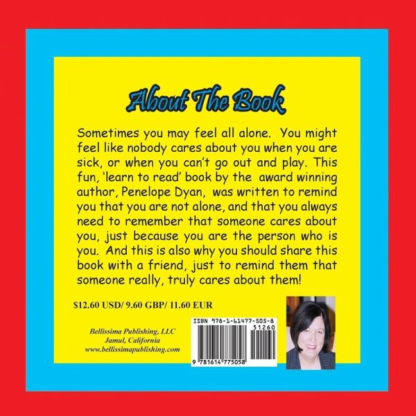 We all need to care about one another; but sometimes when we get to feeling down, or when we are sick, we forget that we are loved. We forget that someone cares. This is a book for you to share with others to let them know that you care about them . . . just in case they happen to feel like nobody really, truly cares about them! Show that someone that you care; and make sure they know and remember that caring comes from the heart, and it never matters what they may say or do; because (as far as you are concerned) your love for them is blind! Think about this, as you travel through the pages of this fun, 'learn to read' book, written by award winning author, attorney and former teacher, Penelope Dyan, that is filled with word recognition, word repetition and rhyme, to help you practice your reading skills and build your reading word vocabulary! And if you find some new vocabulary words that you don't know or understand, you can have a grown-up help you look up those words in a dictionary! Then when you are all finished traveling through the pages of this book, you can go to Bellissimavideo's YouTube channel, and watch the free, fun music video that goes with this book!