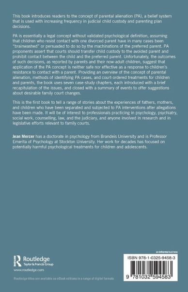 This book introduces readers to the concept of parental alienation (PA), a belief system that is used with increasing frequency in judicial child custody and parenting plan decisions.