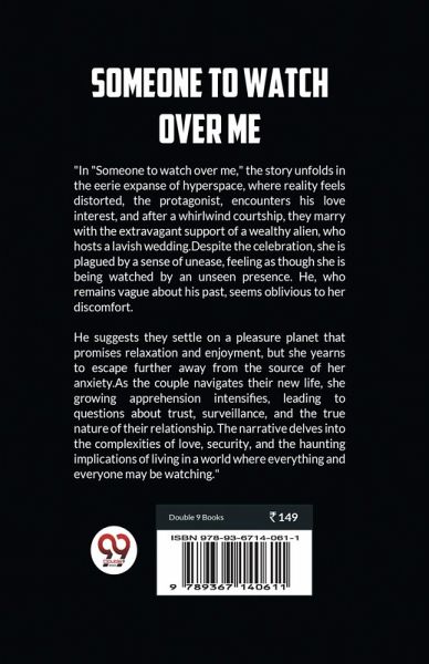 In ""Someone to watch over me,"" the story unfolds in the eerie expanse of hyperspace, where reality feels distorted, the protagonist, encounters his love interest, and after a whirlwind courtship, they marry with the extravagant support of a wealthy alien, who hosts a lavish wedding. Despite the celebration, she is plagued by a sense of unease, feeling as though she is being watched by an unseen presence. He, who remains vague about his past, seems oblivious to her discomfort. He suggests they settle on a pleasure planet that promises relaxation and enjoyment, but she yearns to escape further away from the source of her anxiety. As the couple navigates their new life, she growing apprehension intensifies, leading to questions about trust, surveillance, and the true nature of their relationship. The narrative delves into the complexities of love, security, and the haunting implications of living in a world where everything and everyone may be watching.