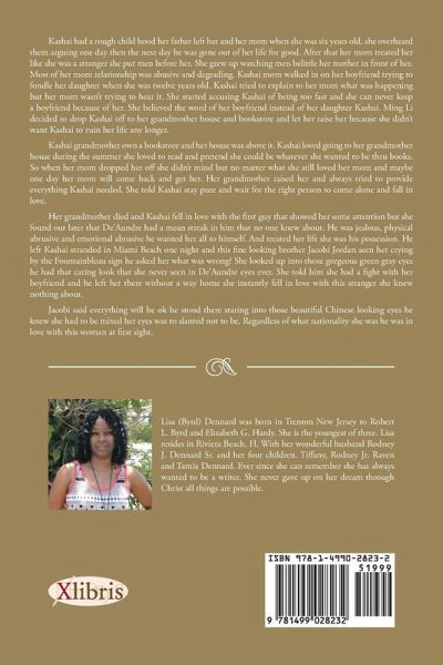 Kashai had a rough child hood her father left her and her mom when she was six years old. she overheard them arguing one day then the next day he was gone out of her life for good. After that her mom treated her like she was a stranger she put men before her. She grew up watching men belittle her mother in front of her. Most of her mom relationship was abusive and degrading. Kashai mom walked in on her boyfriend trying to fondle her daughter when she was twelve years old. Kashai tried to explain to her mom what was happening but her mom wasn't trying to hear it. She started accusing Kashai of being too fast and she can never keep a boyfriend because of her. She believed the word of her boyfriend instead of her daughter Kashai. Ming Li decided to drop Kashai off to her grandmother house and bookstore and let her raise her because she didn't want Kashai to ruin her life any longer. Kashai grandmother own a bookstore and her house was above it. Kashai loved going to her grandmother house during the summer she loved to read and pretend she could be whatever she wanted to be thru books. So when her mom dropped her off she didn't mind but no matter what she still loved her mom and maybe one day her mom will come back and get her. Her grandmother raised her and always tried to provide everything Kashai needed. She told Kashai stay pure and wait for the right person to come alone and fall in love. Her grandmother died and Kashai fell in love with the first guy that showed her some attention but she found out later that De'Aundre had a mean streak in him that no one knew about. He was jealous, physical abrusive and emotional abrusive he wanted her all to himself. And treated her life she was his possession. He left Kashai stranded in Miami Beach one night and this fine looking brother Jacobi Jordan seen her crying by the Fountainbleau sign he asked her what was wrong? She looked up into those gorgeous green gray eyes he had that caring look that she never seen in De'Aundre eyes ever. She told him she had a fight with her boyfriend and he left her there without a way home she instantly fell in love with this stranger she knew nothing about. Jacobi said everything will be ok he stood there staring into those beautiful Chinese looking eyes he knew she had to be mixed her eyes was to slanted not to be. Regardless of what nationality she was he was in love with this woman at first sight.