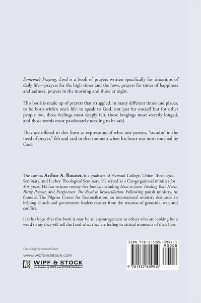 Someone's Praying, Lord is a book of prayers written specifically for situations of daily life--prayers for the high times and the lows, prayers for times of happiness and sadness, prayers in the morning and those at night. This book is made up of prayers that struggled, in many different times and places, to be born within one's life; to speak to God, not just for oneself but for other people too, those feelings most deeply felt, those longings most secretly longed, and those words most passionately needing to be said. They are offered in this form as expressions of what one person, ""standin' in the need of prayer,"" felt and said in that moment when his heart was most touched by God.