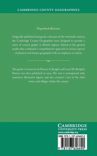 Originally published during the early part of the twentieth century, the Cambridge County Geographies were designed to provide a series of concise guides to British regions. Aimed at the general reader, they combined a comprehensive approach to various aspects of physical and human geography with an emphasis on clarity. This guide to Somerset by Francis A. Knight and Louie M. (Knight) Dutton was first published in 1909. The text is interspersed with numerous illustrative figures and also contains a list of the chief towns and villages within the county.