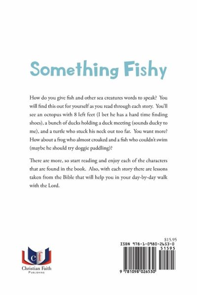 How do you give four-legged animals, fish, and other sea and land creatures words to speak? You will find this out for yourself as you read through each story. You'll see an octopus with 8 left feet (I bet he has a hard time finding shoes), a dog who thinks he's a cat (crazy), a unicorn who lost his pals, a horse painted with black-and-white stripes (maybe he's color blind), a bunch of ducks holding a duck meeting (sounds ducky to me), and a frightened rabbit (boo!). You want to hear more? Okay, how about a fish who couldn't swim (maybe he should try doggie paddling)? Then there's a sheep who ate dog food (hiccup!) and a giraffe who didn't grow (maybe he didn't eat his Wheaties). There are more, so start reading and enjoy each of the characters that are found in the book. Also with each story there are lessons taken from the Bible that will help you in your day-by-day walk with the Lord