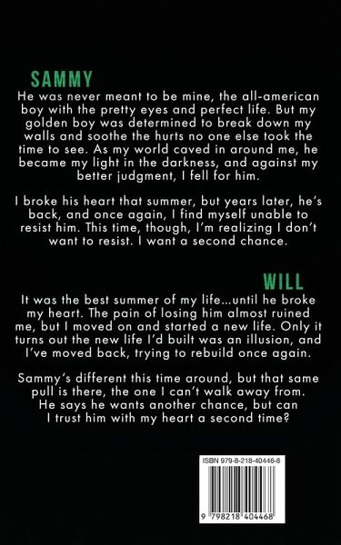 Sammy He was never meant to be mine, the all-american boy with the pretty eyes and perfect life. But my golden boy was determined to break down my walls and soothe the hurts no one else took the time to see. As my world caved in around me, he became my light in the darkness, and against my better judgment, I fell for him. I broke his heart that summer, but years later, he's back, and once again, I find myself unable to resist him. This time, though, I'm realizing I don't want to resist. I want a second chance. Will It was the best summer of my life...until he broke my heart. The pain of losing him almost ruined me, but I moved on and started a new life. Only it turns out the new life I'd built was an illusion, and I've moved back, trying to rebuild once again. Sammy's different this time around, but that same pull is there, the one I can't walk away from. He says he wants another chance, but can I trust him with my heart a second time? Something Good is the first book in the Once and Always series featuring stories about men finding love and their second chances. This emotional romance features themes of parental neglect and abandonment. For a full list of triggers, please visit my website.