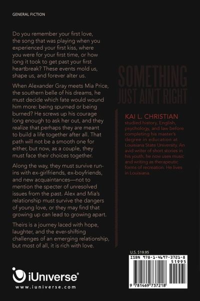 Do you remember your first love, the song that was playing when you experienced your first kiss, where you were for your first time, or how long it took to get past your first heartbreak? These events mold us, shape us, and forever alter us. When Alexander Gray meets Mia Price, the southern belle of his dreams, he must decide which fate would wound him more: being spurned or being burned? He screws up his courage long enough to ask her out, and they realize that perhaps they are meant to build a life together after all. That path will not be a smooth one for either, but now, as a couple, they must face their choices together. Along the way, they must survive run-ins with ex-girlfriends, ex-boyfriends, and new acquaintances-not to mention the specter of unresolved issues from the past. Alex and Mia's relationship must survive the dangers of young love, or they may find that growing up can lead to growing apart. Theirs is a journey laced with hope, laughter, and the ever-shifting challenges of an emerging relationship, but most of all, it is rich with love.