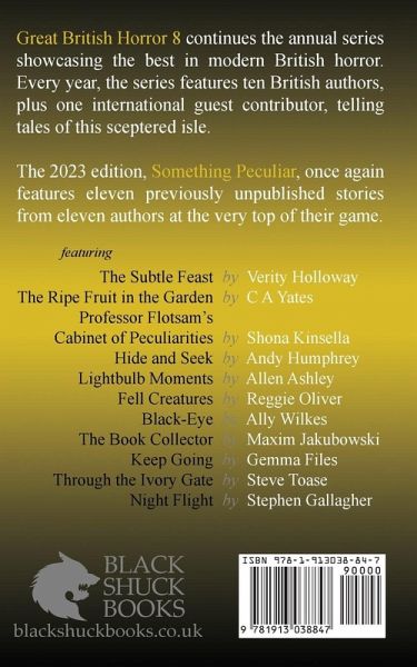 Great British Horror 8 continues the annual series showcasing the best in modern British horror. Every year, the series features ten British authors, plus one international guest contributor, telling tales of this sceptered isle. The 2023 edition, Something Peculiar, once again features eleven previously unpublished stories from eleven authors at the very top of their game.
