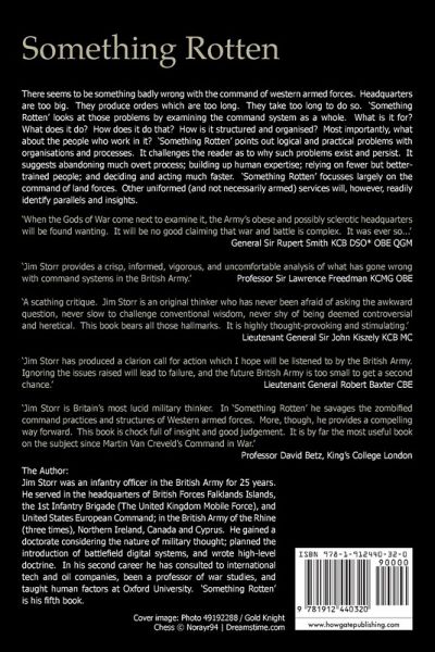 'Something Rotten' points out logical and practical problems with organisations and processes. It challenges the reader as to why such problems exist and persist. It suggests abandoning much overt process; building up human expertise; relying on fewer but better-trained people; and deciding and acting much faster.