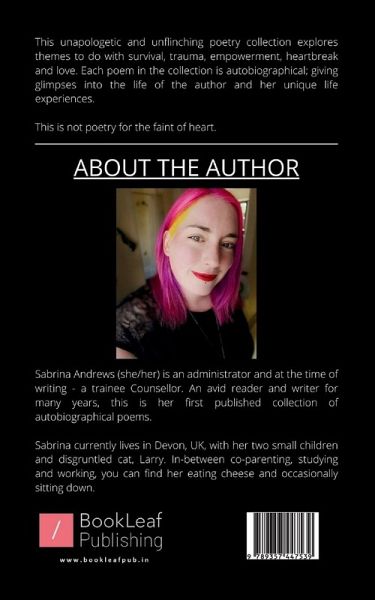 ""This unapologetic and unflinching poetry collection explores themes to do with survival, trauma, empowerment, heartbreak and love. Each poem in the collection is autobiographical; giving glimpses into the life of the author and her unique life experiences. This is not poetry for the faint of heart.""