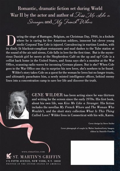 Romantic, dramatic fiction set during World War II by the actor and author of Kiss Me Like a Stranger and My French Whore Something to Remember You By begins during the siege of Bastogne, Belgium on Christmas Day, 1944. In a foxhole where he is caring for five American soldiers, innocent but clever young medic Corporal Tom Cole is injured. Convalescing in wartime London, with its dimly lit blackout-compliant restaurants and mad dashes to the Tube station at the sound of the air raid sirens, Cole falls in love for the first time. But is the mysterious Danish girl he meets at the Shepherdess Café on the up and up? Cole is a cellist back home in the States, and Anna says she's a monitor at the War Office, scanning radio waves for incoming German planes. But is she? When Cole goes to the War Office one day to surprise his new lover, she's nowhere to be found. Gene Wilder's Something to Remember You By takes Cole on a quest for the woman he loves but no longer trusts, and ultimately parachutes him, a newly minted intelligence officer, behind enemy lines into a concentration camp to save her life and discover the truth.