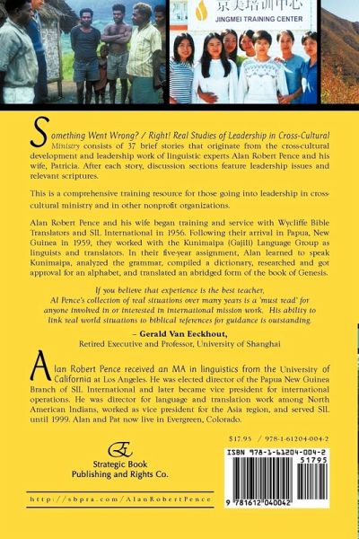 Something Went Wrong? / Right! Real Studies of Leadership in Cross-Cultural Ministry consists of 37 brief stories that originate from the cross-cultural development and leadership work of linguistic experts Alan Robert Pence and his wife, Patricia. After each story, discussion sections feature leadership issues and relevant scriptures. This is a comprehensive training resource for those going into leadership in cross-cultural ministry and in other nonprofit organizations. Alan Robert Pence and his wife began training and service with Wycliffe Bible Translators and SIL International in 1956. Following their arrival in Papua, New Guinea in 1959, they worked with the Kunimaipa (Gajili) Language Group as linguists and translators. In their five-year assignment, Alan learned to speak Kunimaipa, analyzed the grammar, compiled a dictionary, researched and got approval for an alphabet, and translated an abridged form of the book of Genesis. If you believe that experience is the best teacher, Al Pence's collection of real situations over many years is a 'must read' for anyone involved in or interested in international mission work. His ability to link real world situations to biblical references for guidance is outstanding. - Gerald Van Eeckhout, Retired Executive and Professor, University of Shanghai Alan Robert Pence received an MA in linguistics from the University of California at Los Angeles. He was elected director of the Papua New Guinea Branch of SIL International and later became vice president for international operations. He was director for language and translation work among North American Indians, worked as vice president for the Asia region, and served SIL until 1999. Alan and Pat now live in Evergreen, Colorado. http://sbpra.com/AlanRobertPence