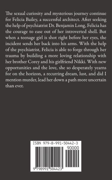 The sexual curiosity and mysterious journey continue for Felicia Bailey, a successful architect. After seeking the help of psychiatrist Dr. Benjamin Long, Felicia has the courage to ease out of her introverted shell. But when a teenage girl is shot right before her eyes, the incident sends her back into his arms. With the help of the psychiatrist, Felicia is able to forge through her trauma by building a more loving relationship with her brother Corey and his girlfriend Nikki. With new opportunities and the love, she so desperately yearns for on the horizon, a recurring dream, lust, and did I mention murder, lead her down a path more uncertain than ever.