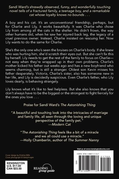 Sandi Ward's shrewdly observed, funny, and wonderfully touching novel tells of a fractured family, a teenage boy, and a remarkable cat whose loyalty knows no bounds . . . A boy and his cat. It's an unconventional friendship, perhaps, but for Charlie and Lily, it works beautifully. It was Charlie who chose Lily from among all the cats in the shelter. He didn't frown, the way other humans did, when he saw her injured back leg, the legacy of a cruel previous owner. Instead, Charlie insisted on rescuing her. Now Lily wants to do the same for Charlie. She's the only one who's seen the bruises on Charlie's body. If she knew who was hurting him, she'd scratch their eyes out. But she can't fix this by herself. Lily needs to get the rest of the family to focus on Charlie-not easy when they're wrapped up in their own problems. Charlie's mother kicked his father out weeks ago and has a new boyfriend who seems charming, but is still a stranger. Oldest son Kevin misses his father desperately. Victoria, Charlie's sister, also has someone new in her life, and Lily is decidedly suspicious. Even Charlie's father, who Lily loves dearly, is behaving strangely. Lily knows what it's like to feel helpless. But she also knows that you don't always have to be the biggest or the strongest to fight fiercely for the ones you love . . . Praise for Sandi Ward's The Astonishing Thing "A beautiful and touching look into the intricacies of marriage and family life, all seen through the loving and unique perspective of the family pet." -Modern Cat "The Astonishing Thing feels like a bit of a miracle and we all could use a miracle." -Holly Chamberlin, author of The Summer Nanny