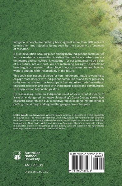 'Indigenous people are pushing back against more than 200 years of colonisation and rejecting being seen by the academy as 'subjects' of research. A quiet revolution is taking place among many Indigenous communities across Australia, a revolution insisting that we have control over our languages and our cultural knowledge - for our languages to be a part of our future, not our past. We are reclaiming our right to determine how linguistic research takes place in our communities and how we want to engage with the academy in the future. This book is an essential guide for non-Indigenous linguists wanting to engage more deeply with Indigenous communities and form genuinely collaborative research partnerships. It fleshes out and redefines ethical linguistic research and work with Indigenous people and communities, with application beyond linguistics. By reassessing, from an Indigenous point of view, what it means to 'save' an endangered language, Something's Gotta Change shows how linguistic research can play a positive role in keeping (maintaining) or putting (reclaiming) endangered languages on our tongues.'- Taken from publisher's website.