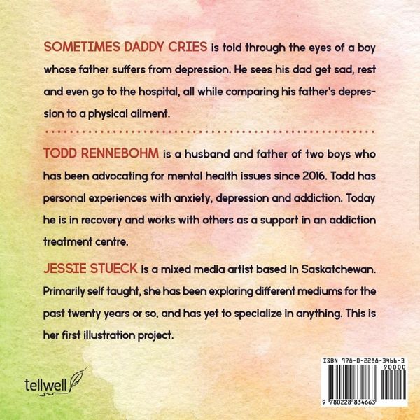 Sometimes Daddy Cries is told through the eyes of a boy whose father suffers from depression. He sees his dad get sad, rest and even go to the hospital, all while comparing his father's depression to a physical ailment. "Todd's book is a timely and important book that will help countless fathers and sons broach the subject of depression. It sets the right expectations, acknowledging that living with depression is a process, and is best met with social support, love and understanding amongst one's closest families and friends. i am grateful this story has been told" -Enzo Verr, Masters Degree in Cognitive and Developmental Studies, York University "What a beautiful book; a book in words and images. I love how it captures the experience of sadness and depression through a child's perception and how the book concludes on such a hopeful note." -Joanne Frederick, MA Registered Psychologist