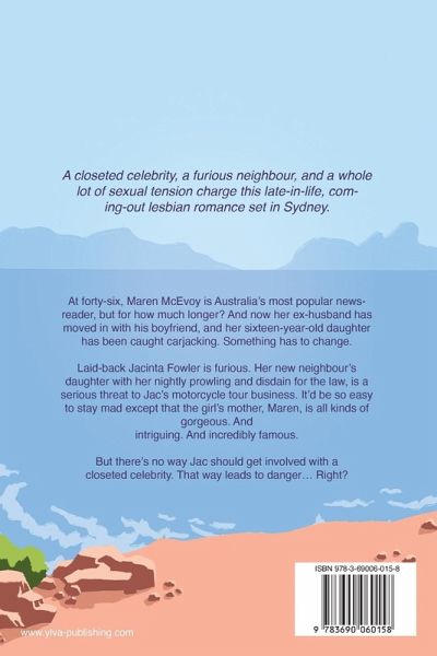 A closeted celebrity, a furious neighbour, and a whole lot of sexual tension charge this late-in-life, coming-out lesbian romance set in Sydney. At forty-six, Maren McEvoy is Australia's most popular newsreader, but for how much longer? And now her ex-husband has moved in with his boyfriend, and her sixteen-year-old daughter has been caught carjacking. Something has to change. Laid-back Jacinta Fowler is furious. Her new neighbour's daughter with her nightly prowling and disdain for the law, is a serious threat to Jac's motorcycle tour business. It'd be so easy to stay mad except that the girl's mother, Maren, is all kinds of gorgeous. And intriguing. And incredibly famous. But there's no way Jac should get involved with a closeted celebrity. That way leads to danger... Right?