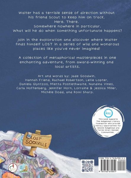 From award-winning and local artists comes this collection of metaphorical masterpieces in one enchanting adventure about the art of being lost and finding yourself along the way. Walter has a terrible sense of direction without his friend Scout to keep him on track. Here. There. Somewhere nowhere in particular. What will he do when something unfortunate happens ... Join in the exploration and discover where Walter finds himself LOST in a series of wild and wondrous places like you've never imagined!
