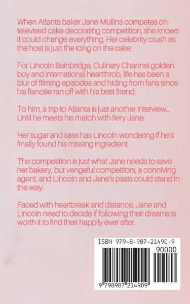 When Atlanta baker Jane Mullins competes on a televised cake decorating competition, she knows it could change everything. Her celebrity crush as the host is just the icing on the cake. For Lincoln Bainbridge, Culinary Channel golden boy and international heartthrob, life has been a blur of filming episodes and hiding from fans since his fiancée ran off with his best friend. To him, a trip to Atlanta is just another interview… Until he meets his match with fiery Jane. Her sugar and sass has Lincoln wondering if he's finally found his missing ingredient. The competition is just what Jane needs to save her bakery, but vengeful competitors, a conniving agent, and Lincoln and Jane's pasts could stand in the way. Faced with heartbreak and distance, Jane and Lincoln need to decide if following their dreams is worth it to find their happily ever after.