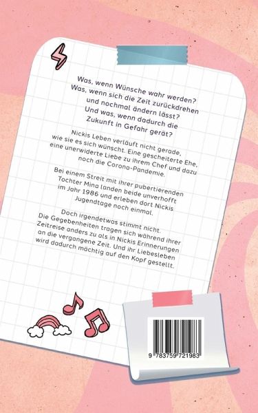 Was, wenn Wünsche wahr werden? Was, wenn sich die Zeit zurückdrehen und nochmal ändern lässt? Und was, wenn dadurch die Zukunft in Gefahr gerät? Nickis Leben verläuft nicht gerade, wie sie es sich wünscht. Eine gescheiterte Ehe, eine unerwiderte Liebe zu ihrem Chef und dazu noch die Corona-Pandemie. Bei einem Streit mit ihrer pubertierenden Tochter Mina landen beide unverhofft im Jahr 1986 und erleben dort Nickis Jugendtage noch einmal. Doch irgendetwas stimmt nicht. Die Gegebenheiten tragen sich während ihrer Zeitreise anders zu als in Nickis Erinnerungen an die vergangene Zeit. Und ihr Liebesleben wird dadurch mächtig auf den Kopf gestellt.