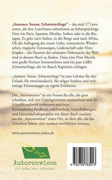 Britta Bendixen, in der ich sonst eher eine Krimnalschriftstellerin sehe, legt als Herausgeberin mit »Sommer, Sonne, Schmetterlinge« ihren Leserinnen und Lesern eine Sammlung sympathischer, eindringlich und auch stilistisch gut geschriebener Love-Stories vor, die zum Mitfühlen und zum Träumen einladen. Oftmals Gänsehaut-Geschichten. Ach ja – noch eins! Was in Anthologien selten zu finden ist, findet hier meine Hochachtung: Der Verzicht auf jegliche Rechtschreib- und Grammatikfehler. Stattdessen stößt der Leser trotz der unterschiedlichen Schreibstile der versammelten elf Autor*Innen stets auf ein gehobenes Sprachniveau. Chapeau!