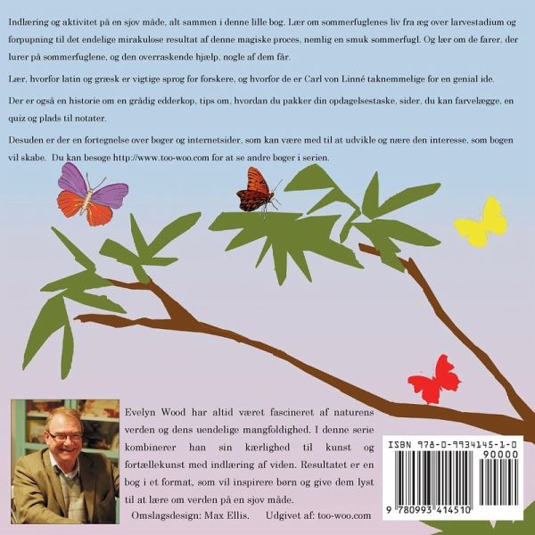 Et værdifuldt indlæringsværktøj. Sommerfuglenes magiske verden er en rejse ind i sommerfuglenes udviklingshistorie fra larver og pupper til deres mirakuløse forvandling til smukke bevingede sommerfugle, som tilmed har været på opdagelse i rummet. Der fortælles om de farer, der lurer på dem, og om den forbløffende hjælp, nogle af dem får. Nye begreber, ord og naturens processer forklares med farvede illustrationer. Børnene præsenteres for brugen af latin inden for etymologien (videnskaben om ordenes afstamning og oprindelige betydning), og om vigtigheden – ikke bare af latin – men også af at kunne forstå andre med samme interesser. De lærer, hvorfor vor tids videnskabsfolk er Carl von Linné taknemmelige for en genial ide. Forældre vil opleve, at layout’et og den sjove indfaldsvinkel vil stimulere deres børns nysgerrighed og igangsætte en virkelig magisk proces. Som afrunding er der for børnene en quiz, gode råde om, hvad der skal være i opdagelsestasken, sider at farvelægge og en side til notater. Der er også en fin historie om en grådig edderkop og den kloge sommerfugl, som ikke har lyst til at blive aftensmad for den. TooWoo gør det nemt og sjovt at lære. Illustrationerne kombineret med facts, aktivitet og historiefortælling er en ny indfaldsvinkel til en nem måde at lære om naturen på. Bogen afsluttes med en fortegnelse over mere avancerede bøger og referencer til websider.